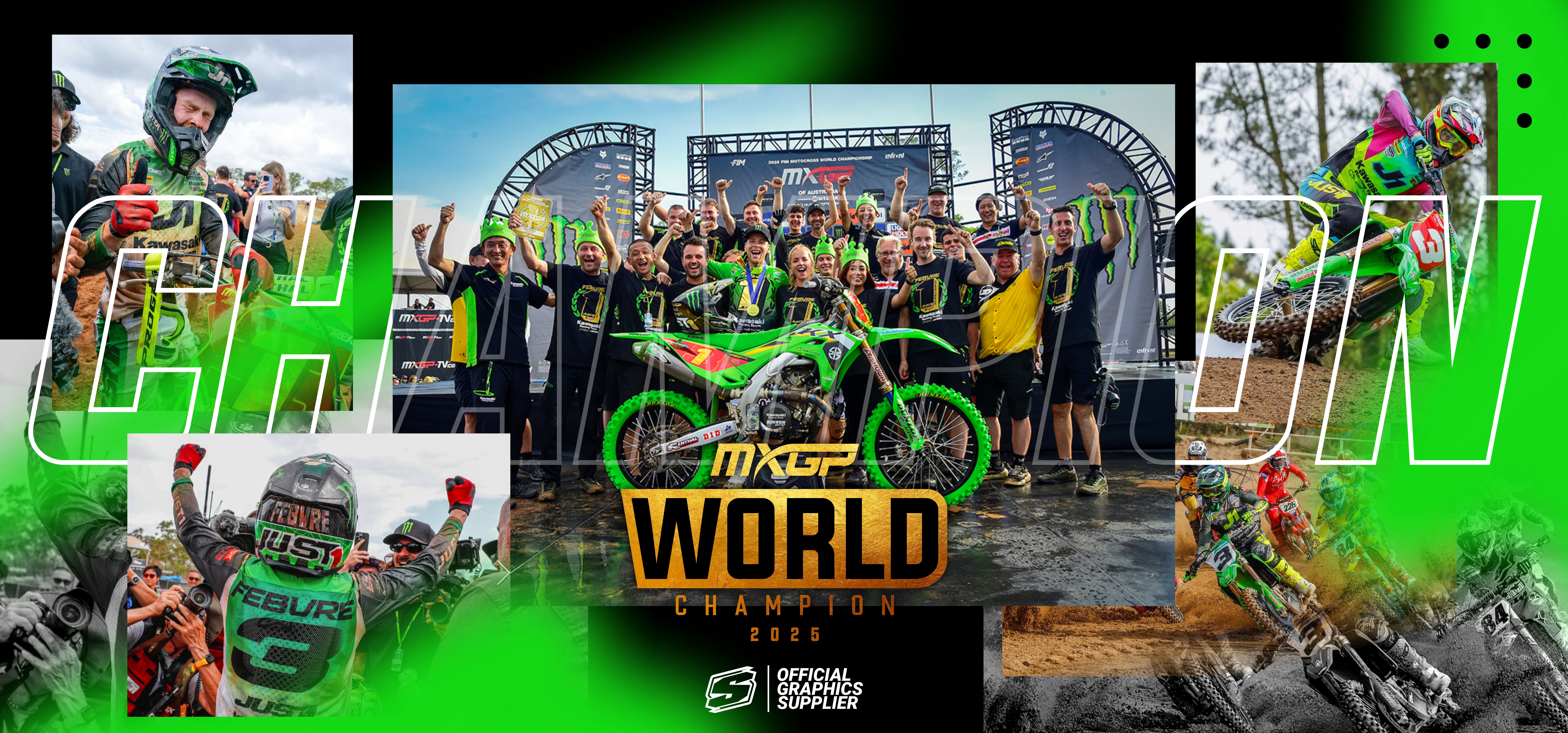 But it's not just about looks; above all we prioritise durability, ensuring our graphics can endure the harshest track conditions. Our commitment to quality has earned us the trust of numerous professional teams and riders, including the 2023 MXGP World champion, Jorge Prado, who rely on our graphics for unbeatable quality and performance from the paddock to the finish line. We are committed to pushing the boundaries of design and new technologies, constantly seeking new ways to innovate and deliver exceptional graphics that exceed the expectations of the motocross community. -