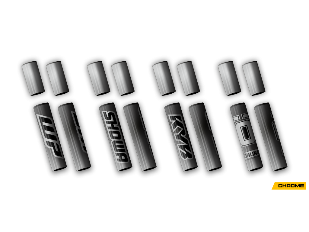 Front suspension sticker set includes 4 pieces. Two stickers are designed for the upper fork area between the triple clamps, and two for the mid-section of the fork, typically featuring a logo.