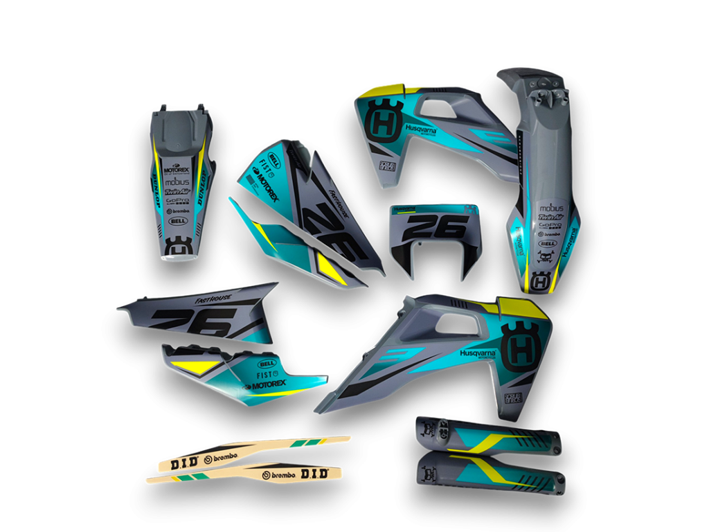 Die Kits bleiben mit Fahrername und Startnummer anpassbar, ohne dass Sie die Grafiken selbst montieren müssen. Jedes Kit wird auf Bestellung gefertigt.