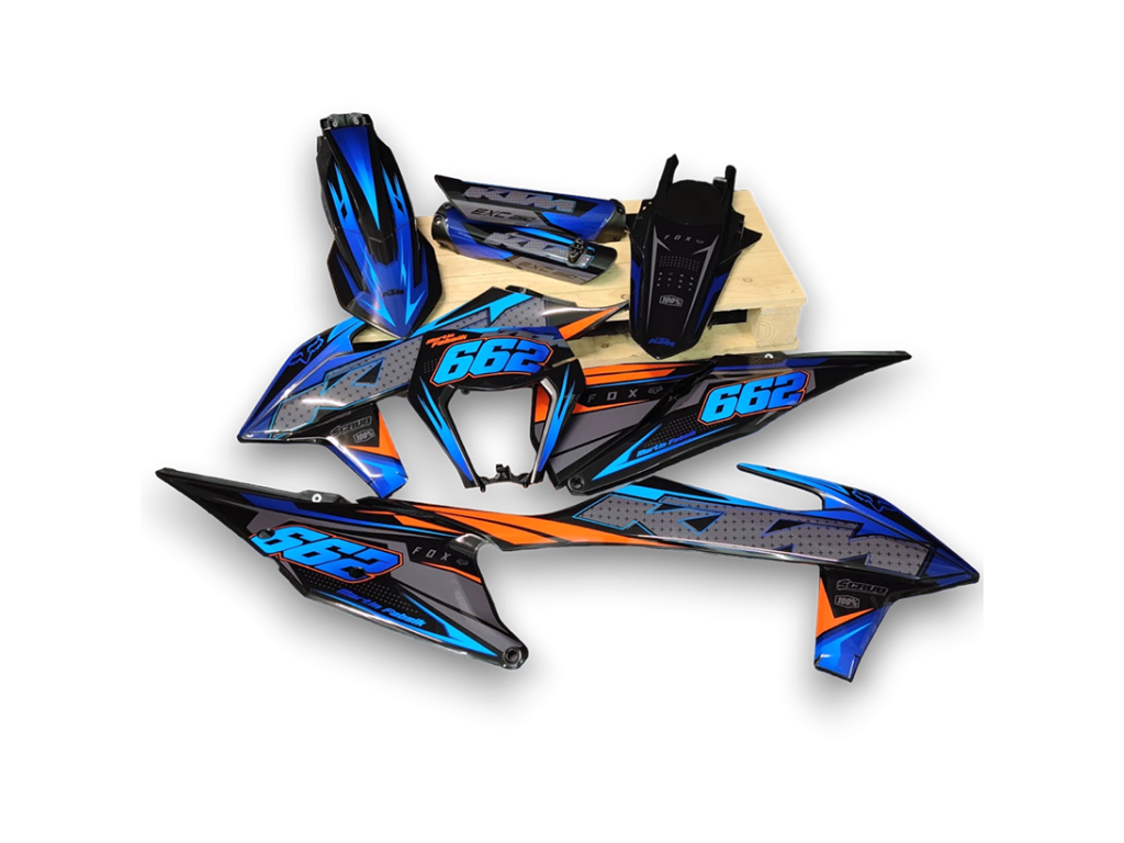 GFP-Kits enthalten neue Kunststoffteile mit Grafiken, die vom Scrub Designz Team professionell angebracht werden. Sie werden montagefertig für Ihr Motorrad geliefert.