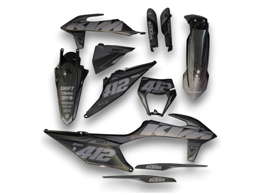 GFP-Kits enthalten neue Kunststoffteile mit Grafiken, die vom Scrub Designz Team professionell angebracht werden. Sie werden montagefertig für Ihr Motorrad geliefert.