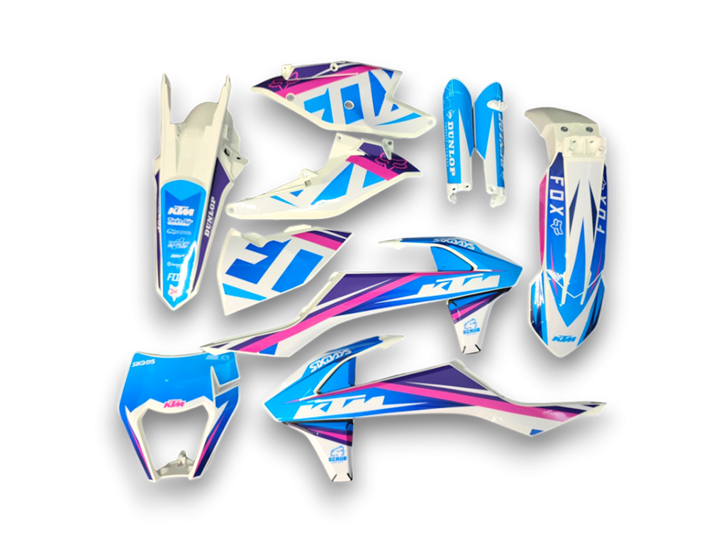 GFP-Kits enthalten neue Kunststoffteile mit Grafiken, die vom Scrub Designz Team professionell angebracht werden. Sie werden montagefertig für Ihr Motorrad geliefert.