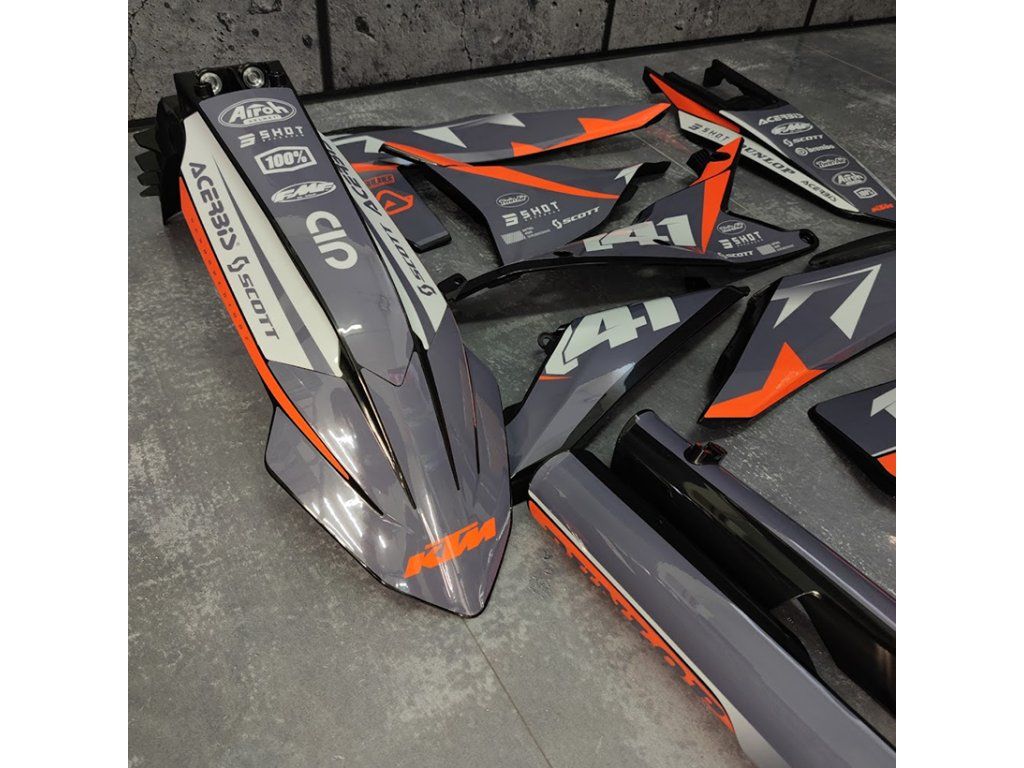 Los kits GFP incluyen plásticos nuevos con gráficos aplicados profesionalmente por el equipo de Scrub Designz. Se suministran listos para instalar en su motocicleta.