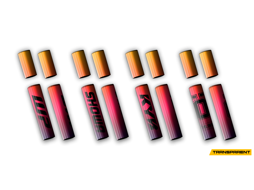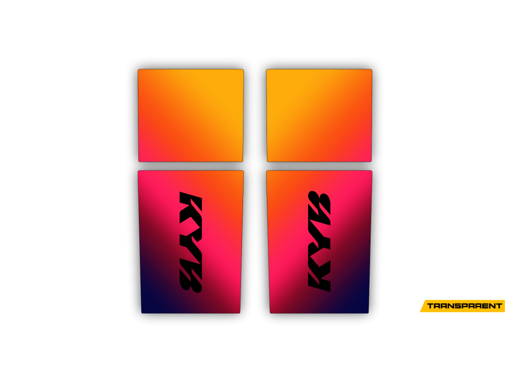 Le kit d’autocollants pour la suspension avant comprend 4 pièces. Deux autocollants sont conçus pour la partie supérieure de la fourche entre les tés de fourche, et deux pour la partie centrale de la fourche, généralement avec un logo.