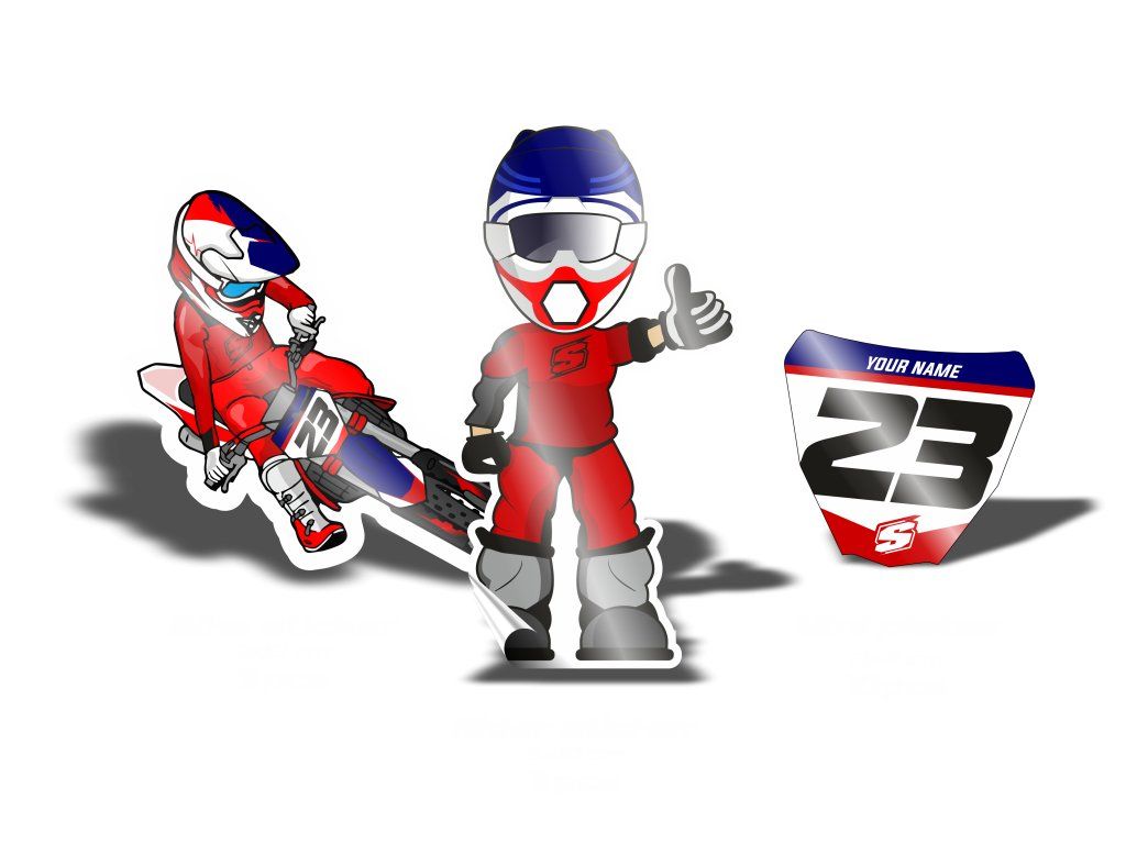 Custom Personal ID stickers produced from durable motocross-grade material with strong adhesive and high-resolution print.