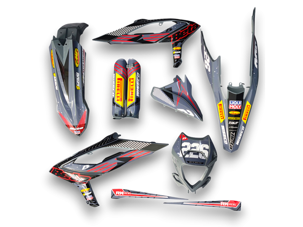 I kit restano personalizzabili con il nome del pilota e il numero di gara, senza la necessità di installare le grafiche autonomamente. Ogni kit è prodotto su ordinazione.
