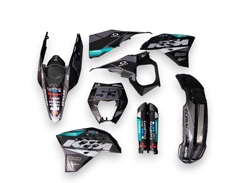 I kit GFP includono nuove plastiche con grafiche applicate professionalmente dal team Scrub Designz. Vengono forniti pronti per essere installati sulla tua moto.
