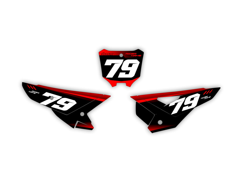 Dopo aver selezionato la tua moto, adattiamo automaticamente il kit grafico per farlo corrispondere perfettamente al tuo modello, inclusi loghi e codici modello. Non sono necessarie note aggiuntive all’ordine.
