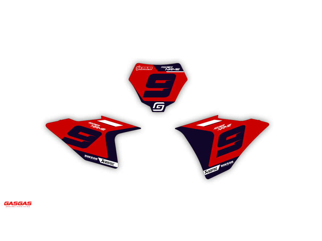 Dopo aver selezionato la tua moto, adattiamo automaticamente il kit grafico per farlo corrispondere perfettamente al tuo modello, inclusi loghi e codici modello. Non sono necessarie note aggiuntive all’ordine.