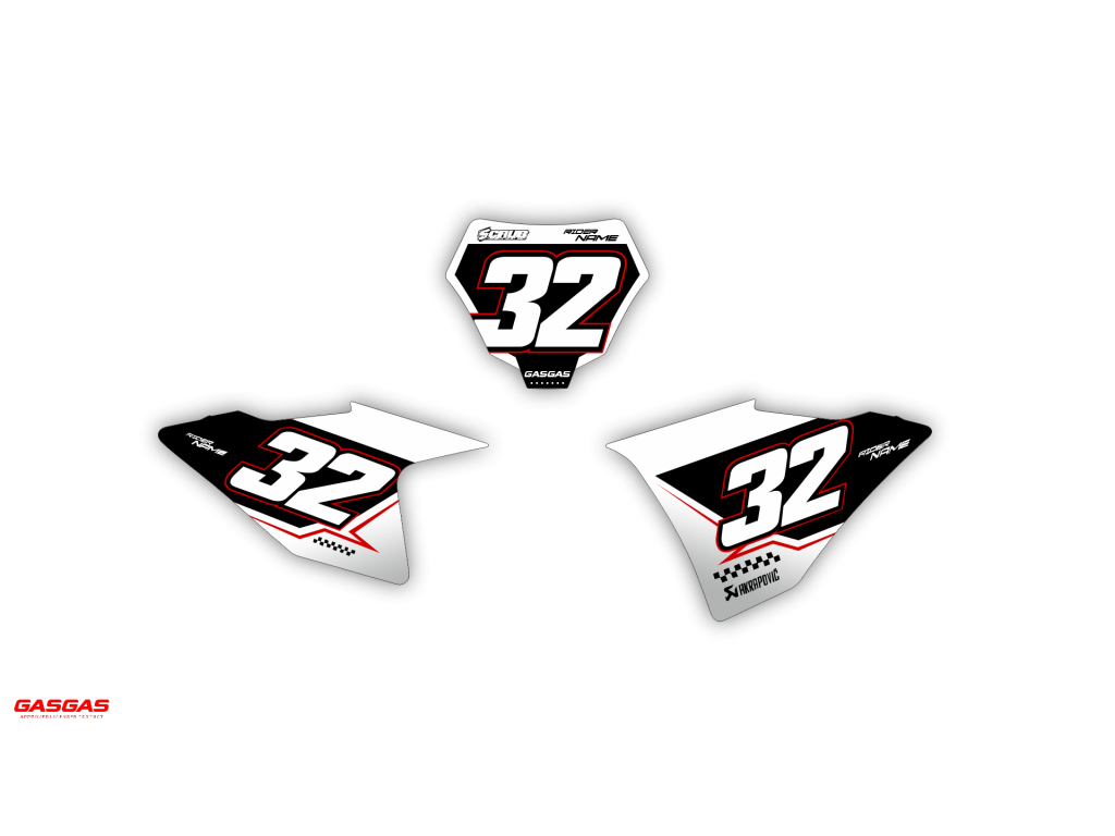 Dopo aver selezionato la tua moto, adattiamo automaticamente il kit grafico per farlo corrispondere perfettamente al tuo modello, inclusi loghi e codici modello. Non sono necessarie note aggiuntive all’ordine.