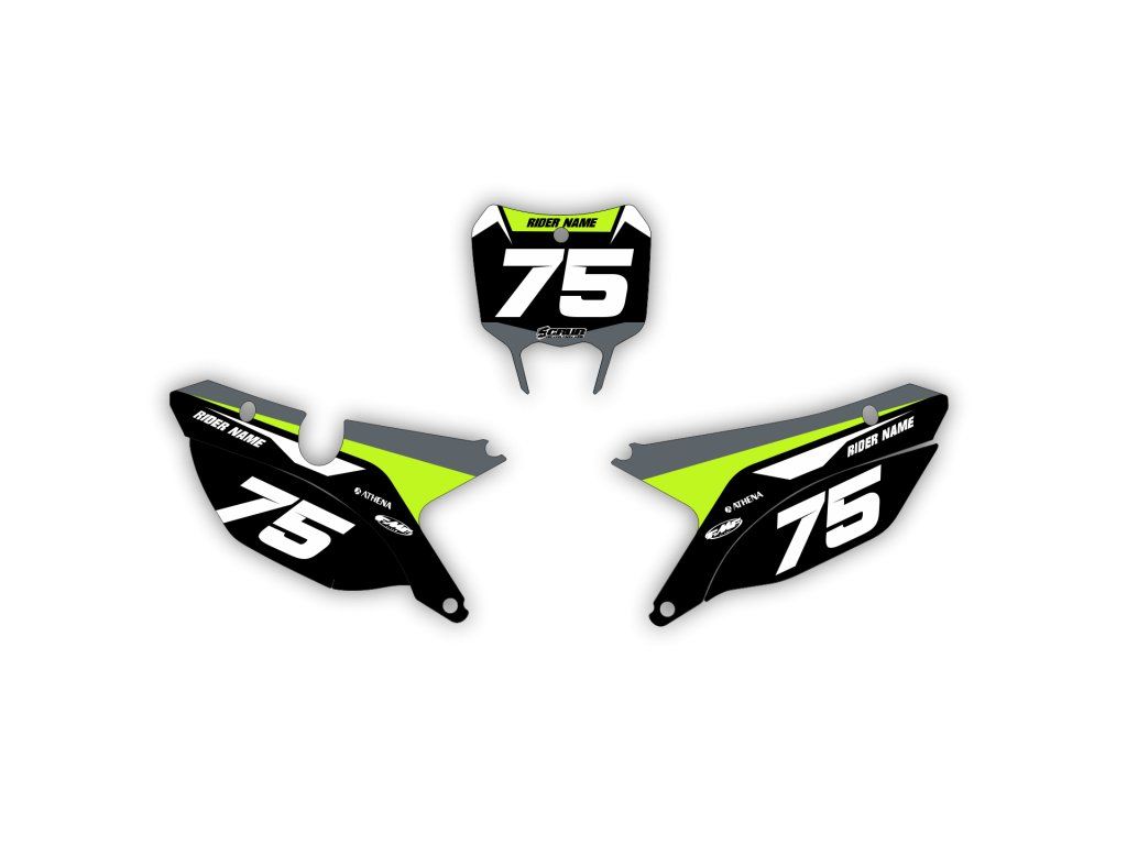 Dopo aver selezionato la tua moto, adattiamo automaticamente il kit grafico per farlo corrispondere perfettamente al tuo modello, inclusi loghi e codici modello. Non sono necessarie note aggiuntive all’ordine.