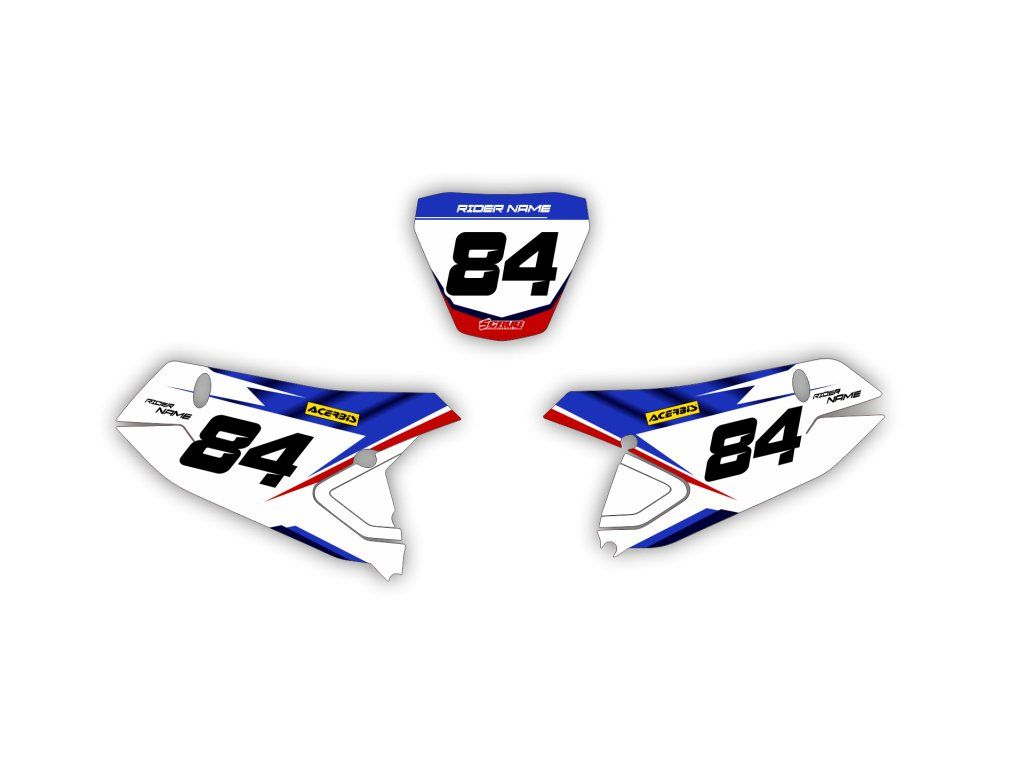 Dopo aver selezionato la tua moto, adattiamo automaticamente il kit grafico per farlo corrispondere perfettamente al tuo modello, inclusi loghi e codici modello. Non sono necessarie note aggiuntive all’ordine.