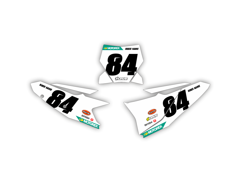 Dopo aver selezionato la tua moto, adattiamo automaticamente il kit grafico per farlo corrispondere perfettamente al tuo modello, inclusi loghi e codici modello. Non sono necessarie note aggiuntive all’ordine.