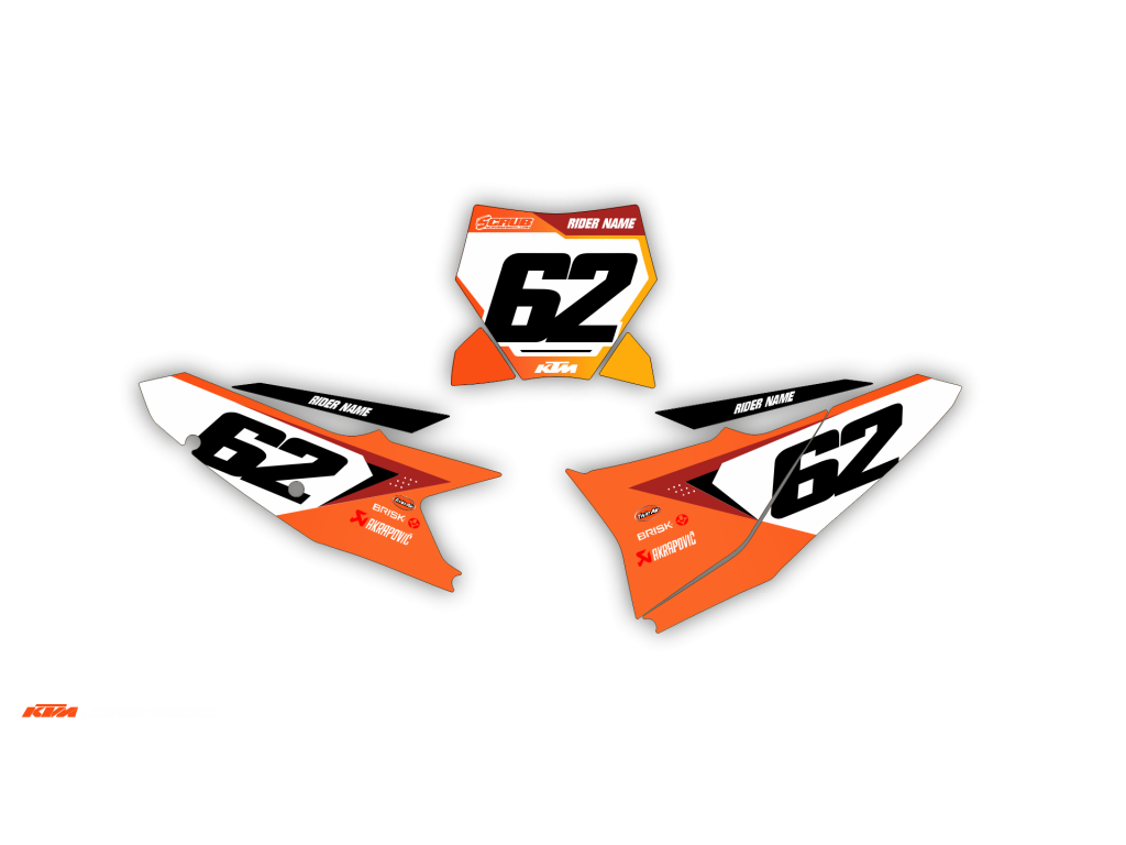 Dopo aver selezionato la tua moto, adattiamo automaticamente il kit grafico per farlo corrispondere perfettamente al tuo modello, inclusi loghi e codici modello. Non sono necessarie note aggiuntive all’ordine.