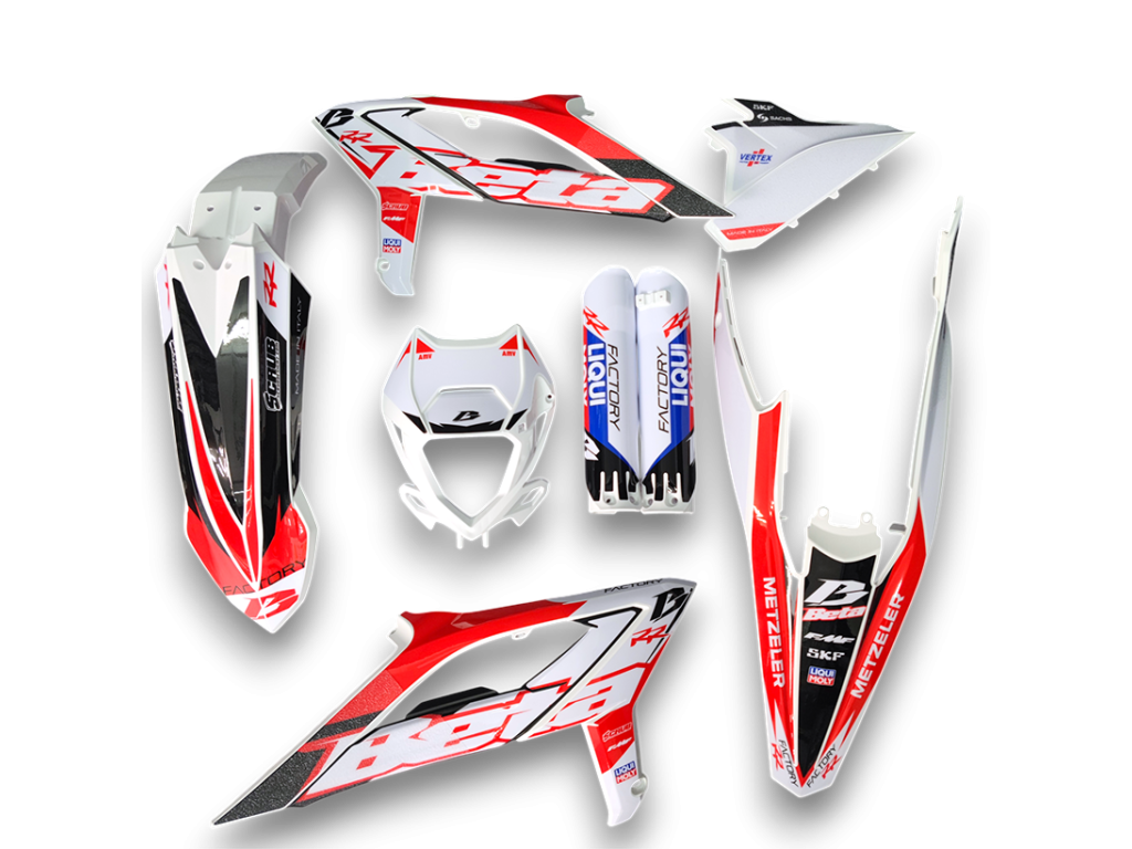 Kity je možné prispôsobiť menom jazdca a štartovacím číslom bez potreby vlastnej inštalácie grafiky. Každý kit sa vyrába na objednávku.