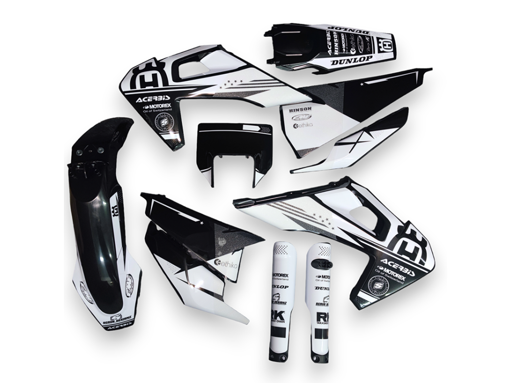 Kity je možné prispôsobiť menom jazdca a štartovacím číslom bez potreby vlastnej inštalácie grafiky. Každý kit sa vyrába na objednávku.