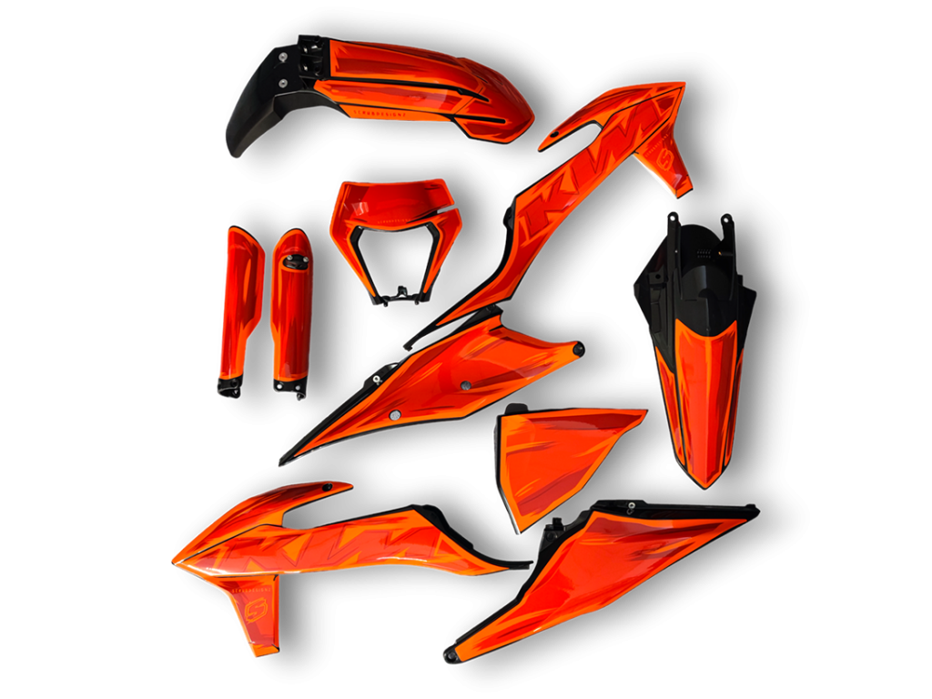 Kity je možné prispôsobiť menom jazdca a štartovacím číslom bez potreby vlastnej inštalácie grafiky. Každý kit sa vyrába na objednávku.